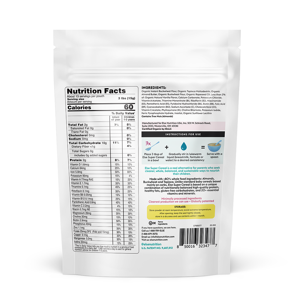 Else Super Cereal is the only Clean Label Purity certified cereal, made with >80% Whole Food Ingredients: buckwheat, almonds and tapioca.